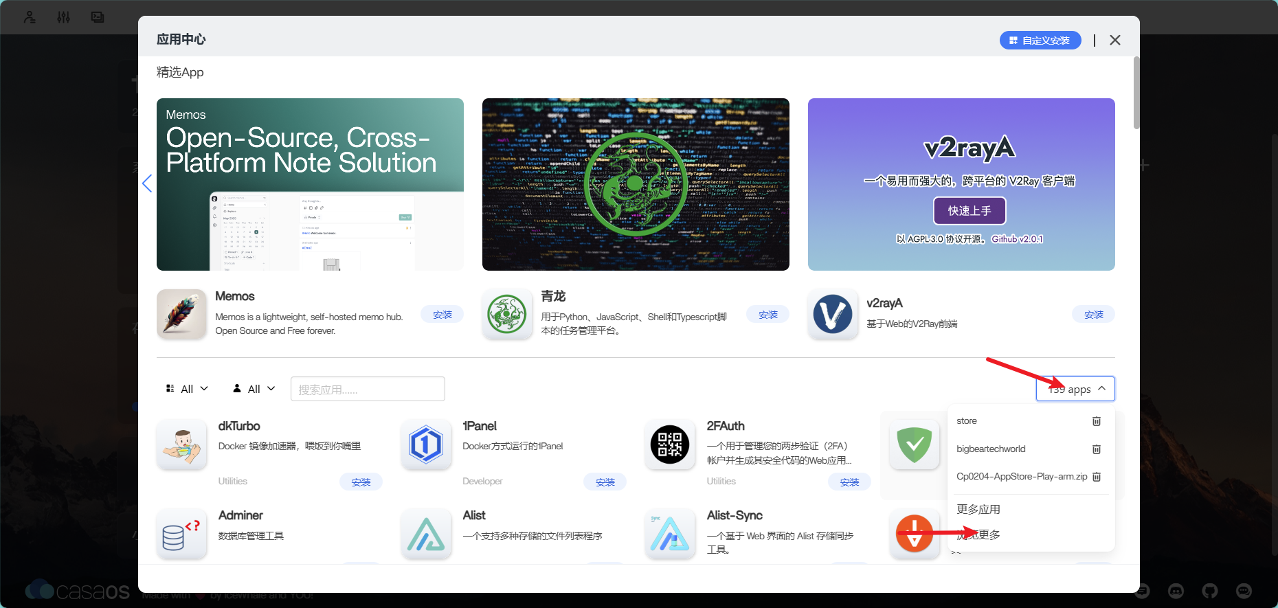- 然后找到浏览更多,点击后会跳转到超棒的商店列表 |超棒的CasaOS网页,这是一个CasaOS的一个第三方应用商店