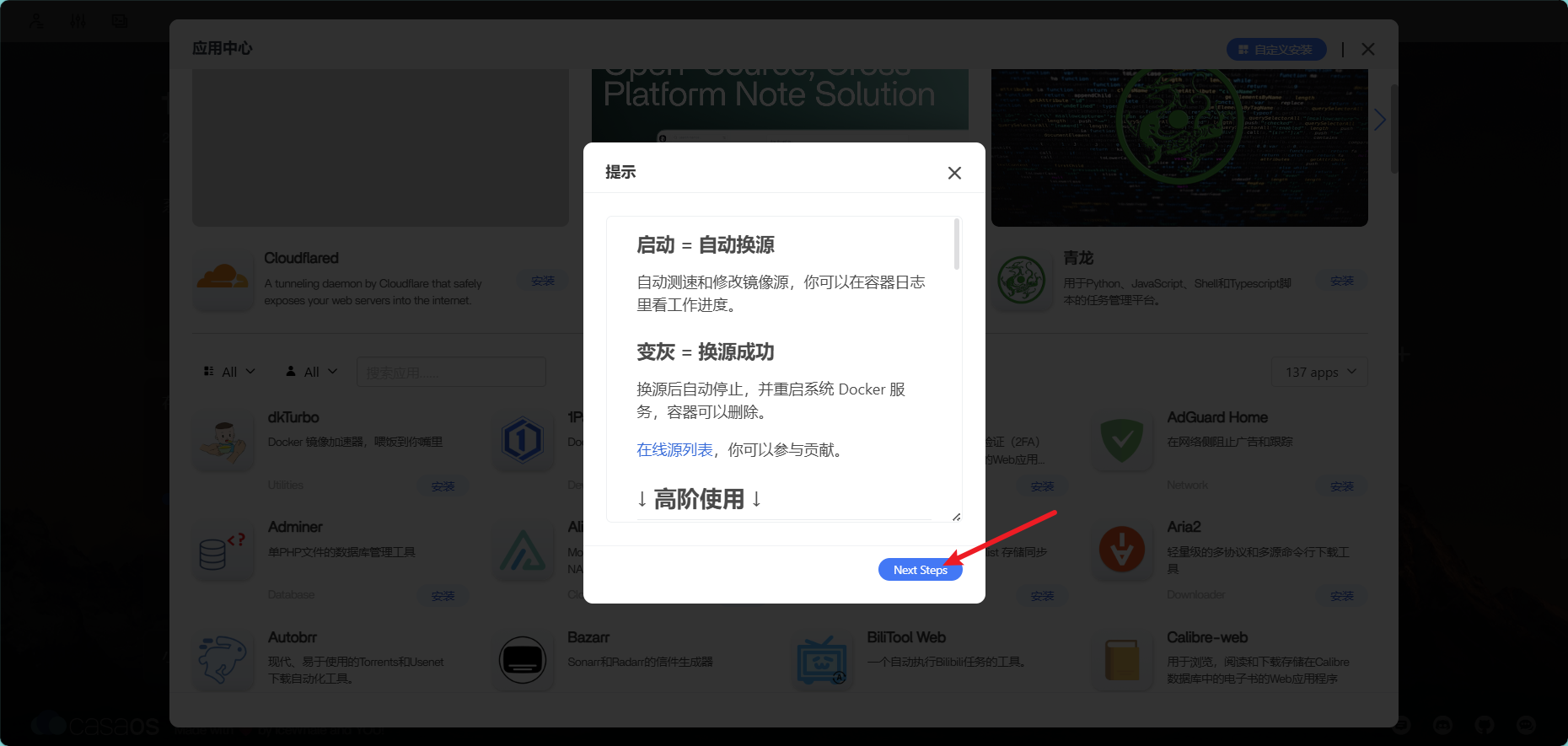 这个问题就是CasaOS默认的Docker镜像太慢导致的,我们需要在App Store安装dkTurbo加速软件,就可以解决这个问题。