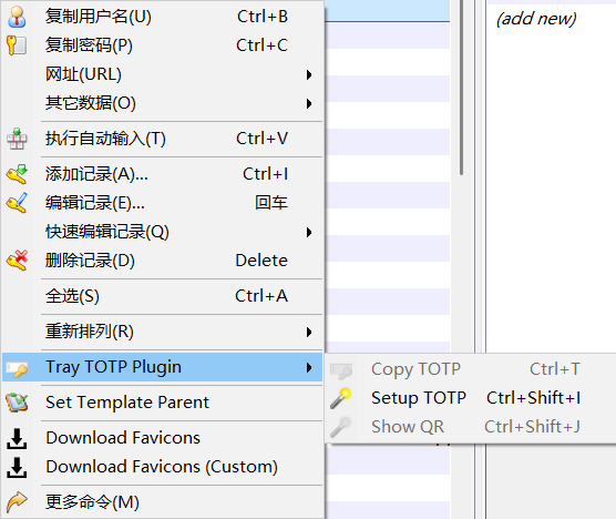 添加方法:选中条目后,右键点击Setup TOTP,或者使用截图当中快捷键也可以